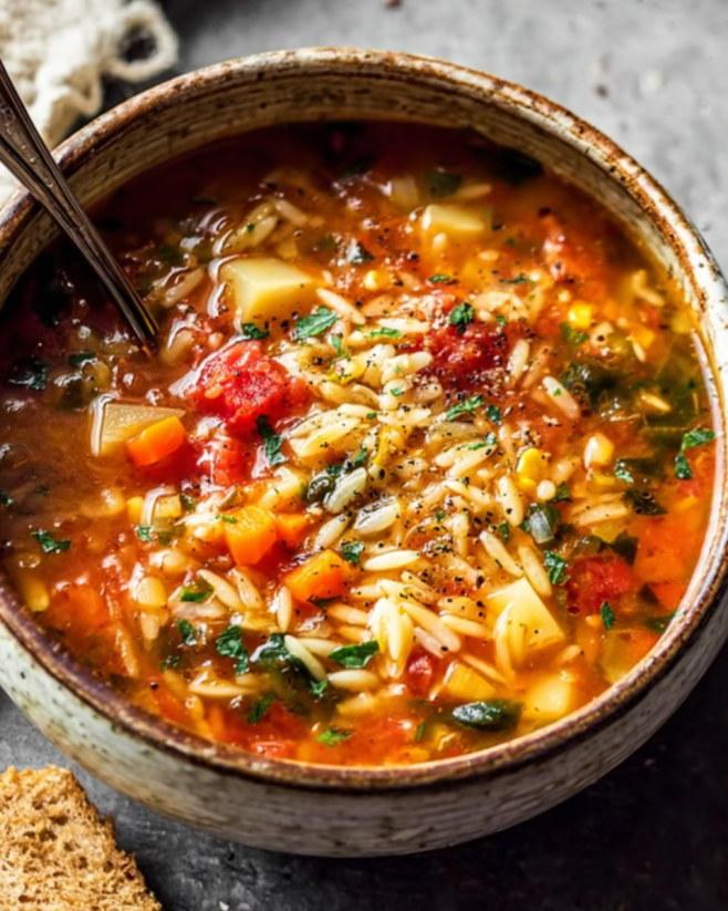 Hearty Vegetable Orzo Soup warms your soul and body.